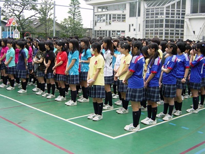 | オープニングセレモニーが始まります。 3年生はお揃いのユニフォームを作成しています。 |