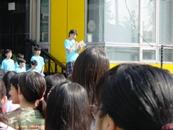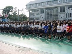 全校生徒が校庭に集まりセレモニーを待っています