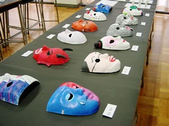 生徒の美術の作品のお面です
