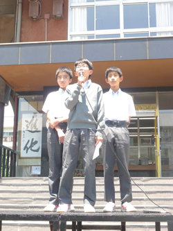 生徒会の会長・副会長・書記など、様々な役員に立候補した生徒たち。全校生徒の前での演説は緊張が強いられますが、みんな堂々とした話しぶりで、役員になったら何を目標にしていくのか、しっかり話すことができました。
