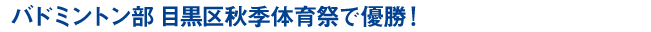 9月28日に開催された目黒区秋季体育祭バドミントン大会において、本校バドミントン部員が高校女子ダブルスの部で優勝しました!