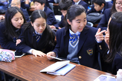 真剣に耳を傾ける生徒たち。