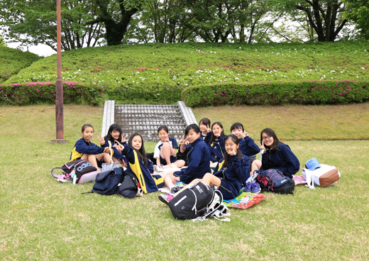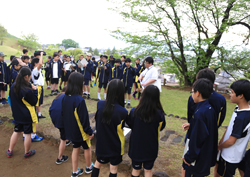 街を見下ろす位置にある古墳は権力者の証。生徒は当時に思いをはせました。