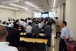 起立して挨拶をして、授業が始まります。