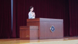 1学期の終業式で「夏休みにどう過ごすかを考えて、実行し、9月1日に会いましょう」と話していた田村校長は、始業式で「考えていた通りに過ごせましたか?」と生徒たちに話しかけました。