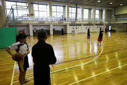 顧問の指導を受けながらシュートの練習からスタート。