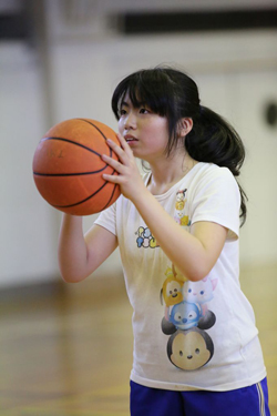 女子バスケットボール部の自慢はチームワークの良さ。中高合わせても部員数は多くはありませんが、バスケットボールが大好きな精鋭が集まって、一生懸命練習しています。