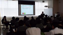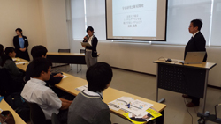 講演の後は、同席していた首都大学東京の企画広報課長の方が、首都大学東京のことを紹介してくださいました。こちらも生徒たちは興味津々。近い将来の大学での学びを想像しながら、熱心に聞き入っていました。