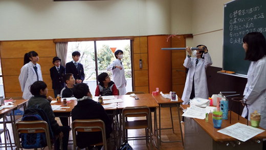科学部はいくつかの実験を用意して、受験生と一緒に行いました。
