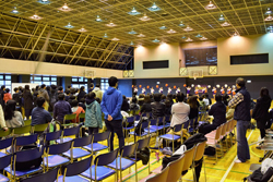 あざみ野セミナーハウスの体育館がオープニングと英会話体験の会場です。