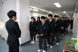 教室では担任が挨拶をし、今日の流れを説明します。