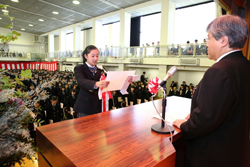 入学式では田村校長の式辞に続き、来賓の寺島実郎多摩大学学長からの祝辞を頂戴しました。