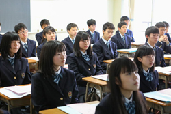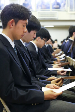 これから3年間歌う学園歌を紹介され、歌詞を確認します。