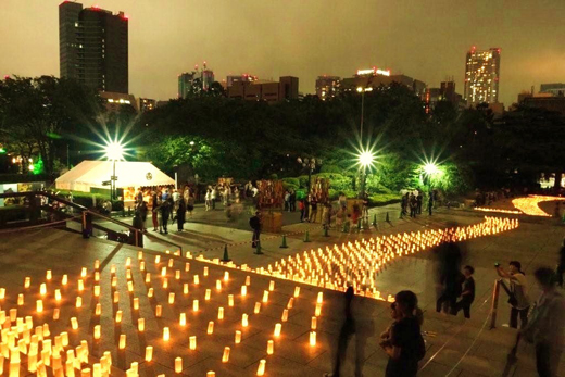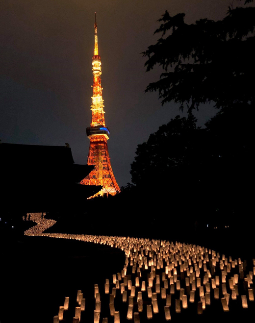 東京タワーをバックに、増上寺七夕祭りのキャンドルナイトは無事終了しました。