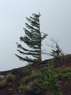 一定方向に吹く風の影響で、枝が同一方向にしか伸びません。。