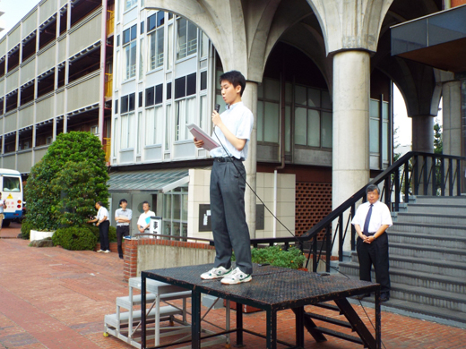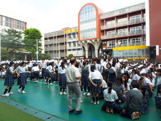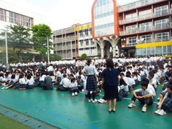 各クラスの人数確認が終わり、全員無事避難できたことを確認したうえで、そのまま始業式が始まりました。