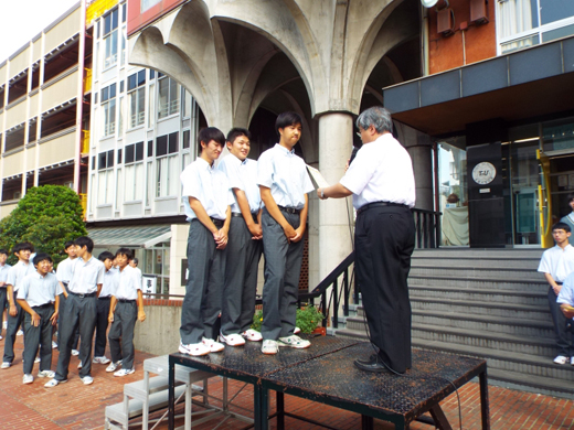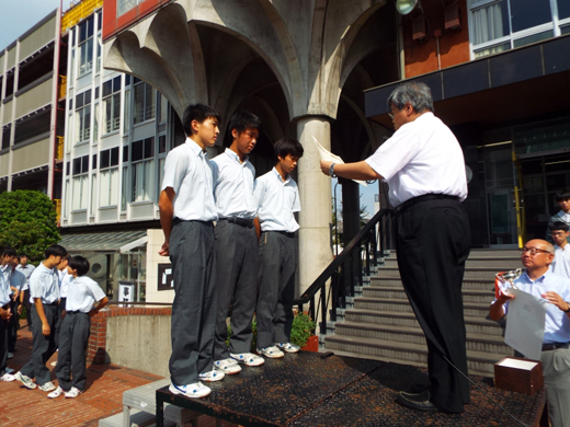 田村校長からは、時間の大切さについてや、また九州北部の大雨による災害についてお話がありました。