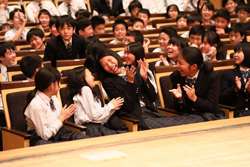 コンクールでは学年ごとに指定された課題曲と、クラスが選ぶ自由曲の2曲で競います。どのクラスも2週間にわたる練習の成果を十分に発揮して、美しい合唱で会場を魅了してくれました。コンクールには多くの保護者の方にもご出席いただき、大いに盛り上がりました。