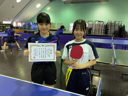 この生徒は小学校時代には卓球の経験はなく、中学1年から卓球を始めました。コロナ禍で練習が思うようにできない時もありましたが、できる日には顧問の教諭と頑張り、見事出場を勝ち取ることができました。
