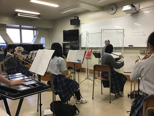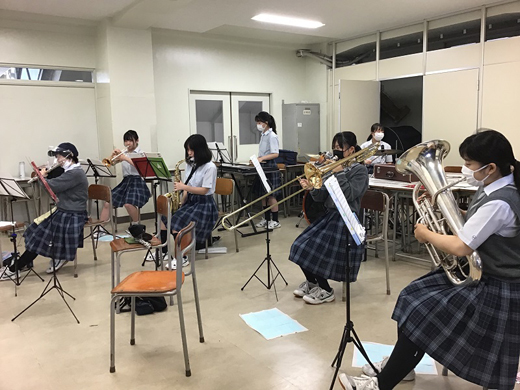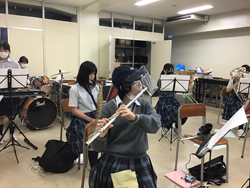 【吹奏楽部】経験者も未経験者も大歓迎! 吹奏楽部は、現在少人数ですが音楽を愛するメンバーで活動しています。 残念ながらこのコロナ禍で、なかなか思うように練習はできていません。それでもできる限りの感染症対策をしながら、今できることに少しずつ、でも一生懸命取り組んでいます。安心してコンサートが開けるようになる日を楽しみに、練習に励んでいます。 経験者も未経験者も音楽が好きな人なら大歓迎!ぜひ多摩大目黒の吹奏楽を一緒に作っていきませんか。