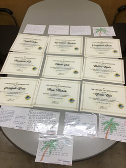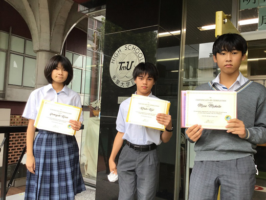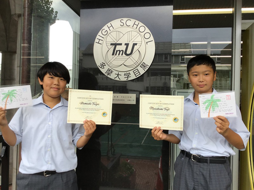 後日、留学先の先生から修了証と手紙が送られてきました。本校で担当教員から手渡しされました。