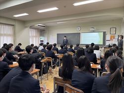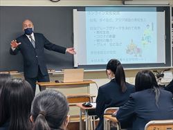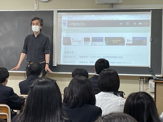高大連携プログラム説明会が行われました 4月19日(火)と21日(木)に、多摩大学との高大連携(高大接続プログラム)の説明会が行われました。 多摩大学目黒の系列校である多摩大学は開学当時から実学教育に力を入れ、アクティブラーニングのプログラムが充実しています。本校では多摩大学と高大連携しながら「アジアダイナミズム」「起業体験」「投資戦略」「プログラミング」「異文化交流」という5つのプロジェクトを進めています。 説明会には、多摩大学副学長の安田震一先生をはじめとする先生方が参加し、本校の生徒にそれぞれのプログラムの内容や面白さを直接伝えてくださいました。生徒たちも大学の先生方や大学生とともに、今までとは違う学びをできるということに興味津々でした。 高大連携プログラムは5月以降に動き出します。コロナ禍で昨年まではほとんどの生徒が参加できず、できたとしても限られた形での参加でしたが、今年からは感染予防に気を使いながらも多くの生徒に参加してもらいたいと考えています。