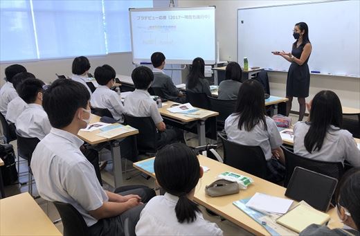 講師として来てくださったのは、グローバルビジネス学部会計ファイナンス学科の小森亜紀子准教授。女性文化研究所、現代ビジネス研究所にも所属されています。本校の高校生のほか、今年昭和女子大学に入学した卒業生1名も参加してくれました。