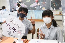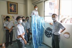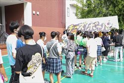 新型コロナの感染状況を踏まえ、残念ながら今年も一般の方には非公開となってしまいましたが、中1から高3まで、全員が力を合わせて素晴らしい颯戻祭を作り上げてくれました。今年は模擬店が復活しましたが、黙食指導のために校庭での食事は不可。決まった教室で食べていました。