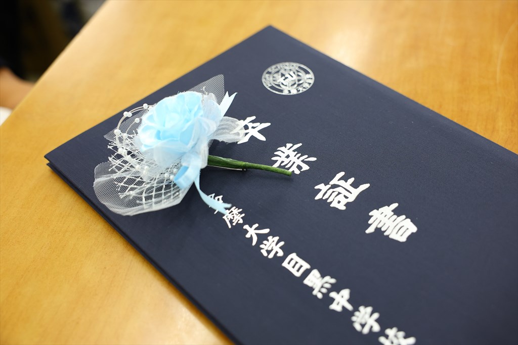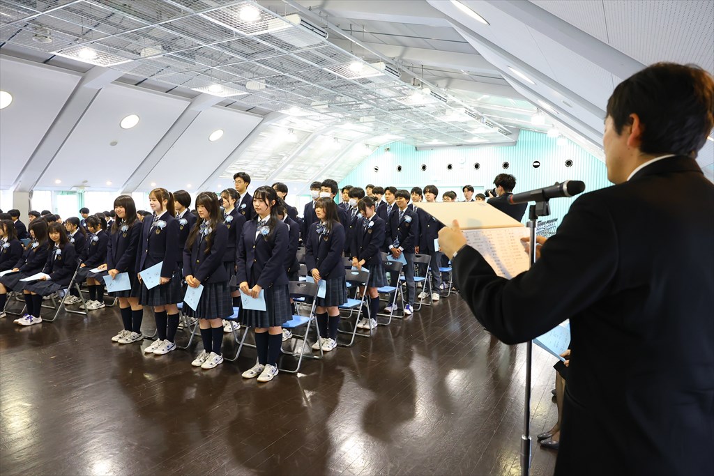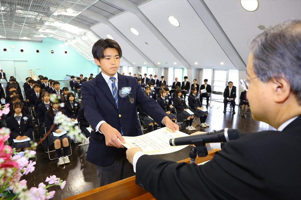 連絡式は中学校の卒業式にあたるもの。中高一貫教育を行っている本校ではほとんどの生徒がそのまま本校の高校課程に進学するため、卒業式という名称は使わずに連絡式と呼んでいます。