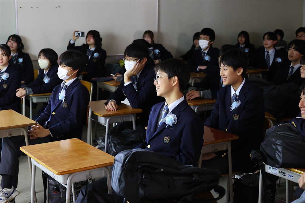 今回は第30回目となる節目の年でした。厳かな雰囲気の中でクラス代表に卒業証書が手渡されました。式の終わりには、各クラスで最後のHRが行われました。皆、和気藹々としながら、3年間一緒だった学年団の先生や級友たちと楽しいひと時を過ごしました。