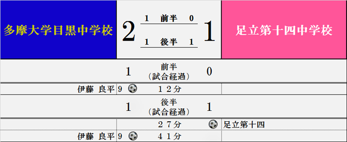多摩大学目黒トップ > 多摩大学目黒中学・高校サッカー部 > 過去の試合結果