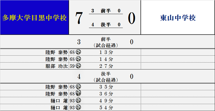 多摩大学目黒トップ > 多摩大学目黒中学・高校サッカー部 > 過去の試合結果