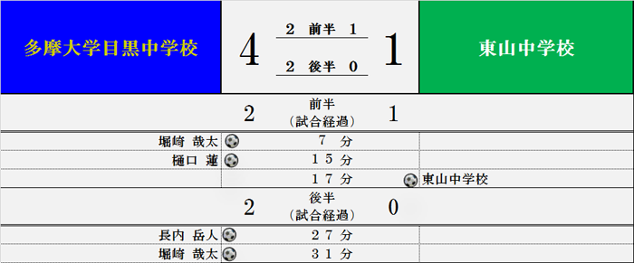 多摩大学目黒トップ > 多摩大学目黒中学・高校サッカー部 > 過去の試合結果