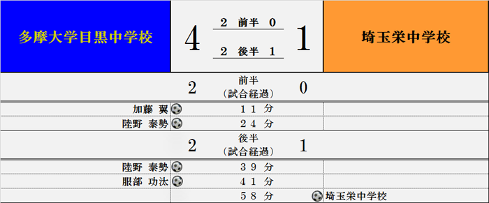 多摩大学目黒トップ > 多摩大学目黒中学・高校サッカー部 > 過去の試合結果