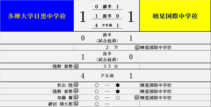 多摩大学目黒トップ > 多摩大学目黒中学・高校サッカー部 > 過去の試合結果