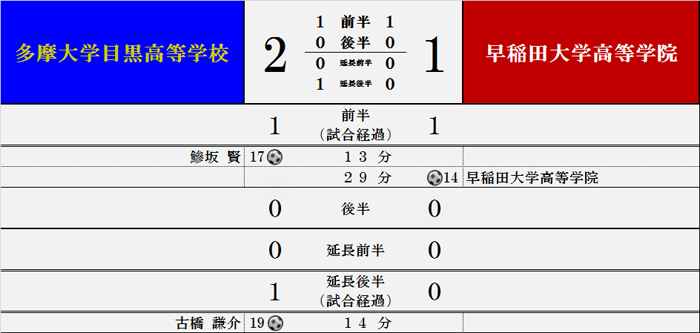 多摩大学目黒トップ > 多摩大学目黒中学・高校サッカー部 > 過去の試合結果