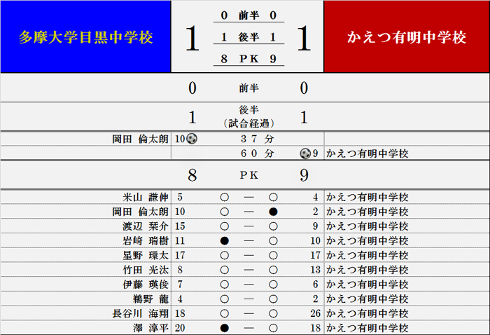 多摩大学目黒トップ > 多摩大学目黒中学・高校サッカー部 > 過去の試合結果