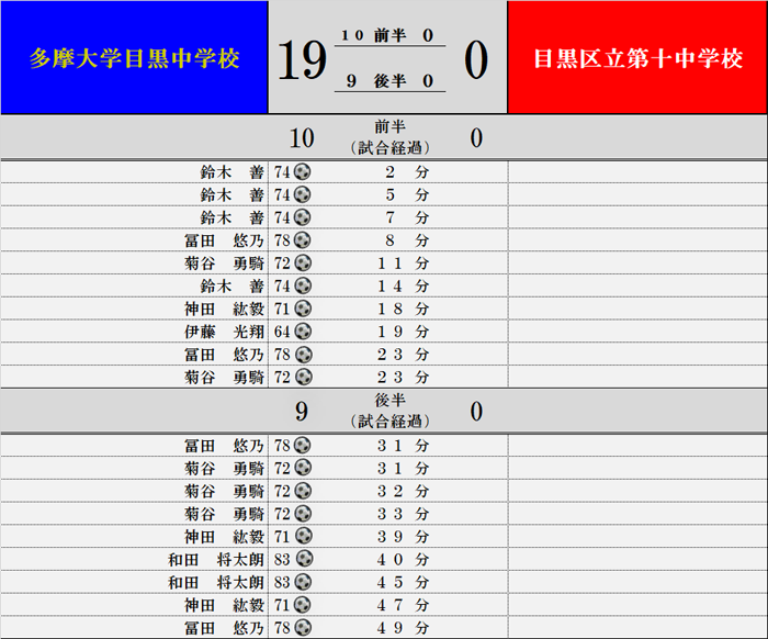 多摩大学目黒トップ > 多摩大学目黒中学・高校サッカー部 > 過去の試合結果