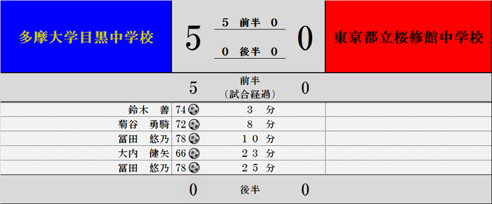 多摩大学目黒トップ > 多摩大学目黒中学・高校サッカー部 > 過去の試合結果