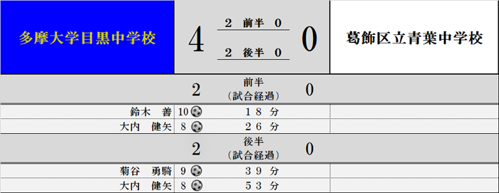 多摩大学目黒中学校・高等学校サッカー部 Tama University Meguro Junior and Senior High School Soccer Club Copyright © Tamura Gakuen. All rights reserved.